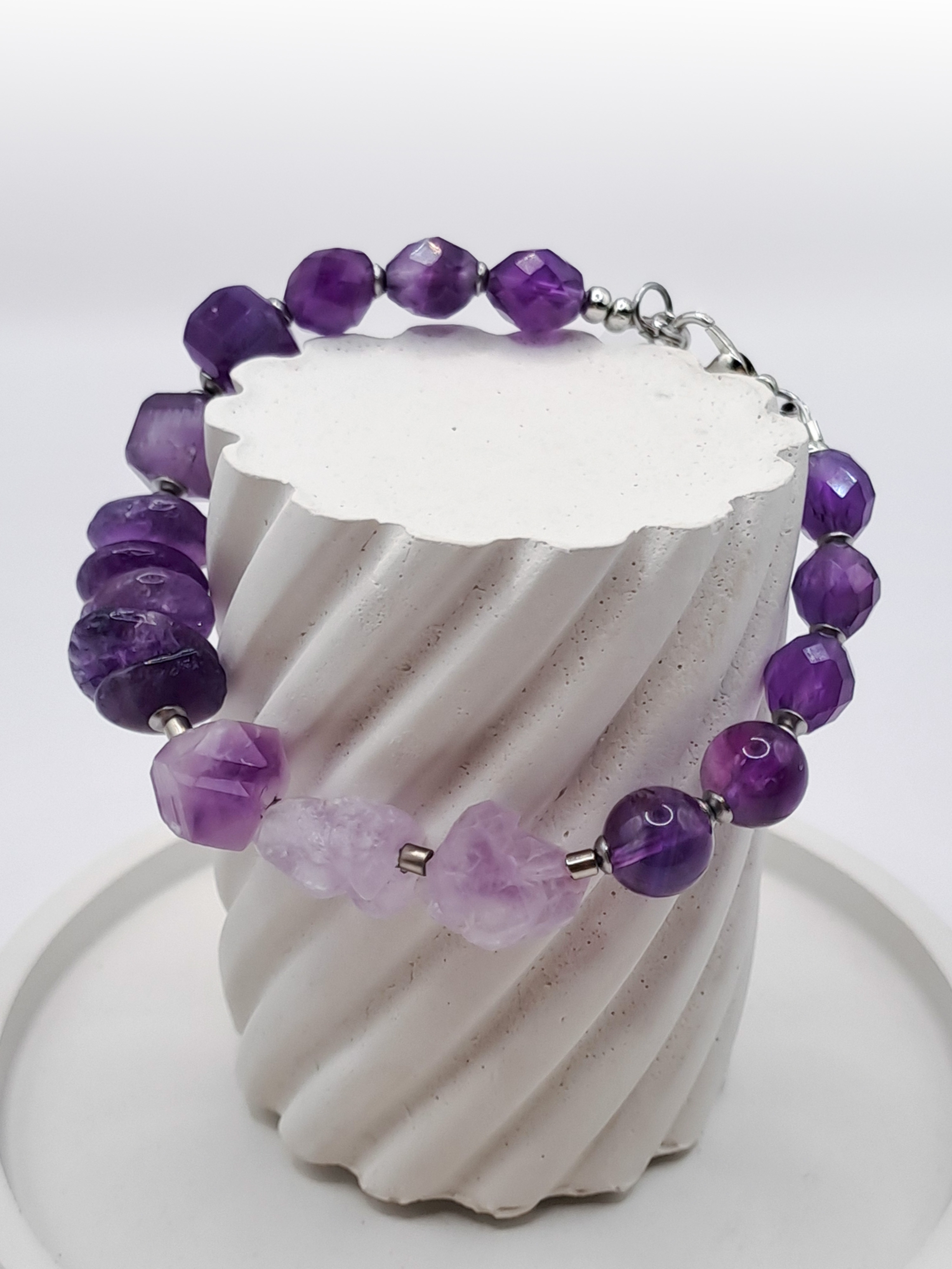 Аметист — символ чистоты, строгости и точности. Избавляет от вспыльчивости и гнева, оберегает от дурных намерений. Раскрывает таланты в человеке, создает позитивную атмосферу. Женщинам продлевает молодость, дарит красоту и очарование.
