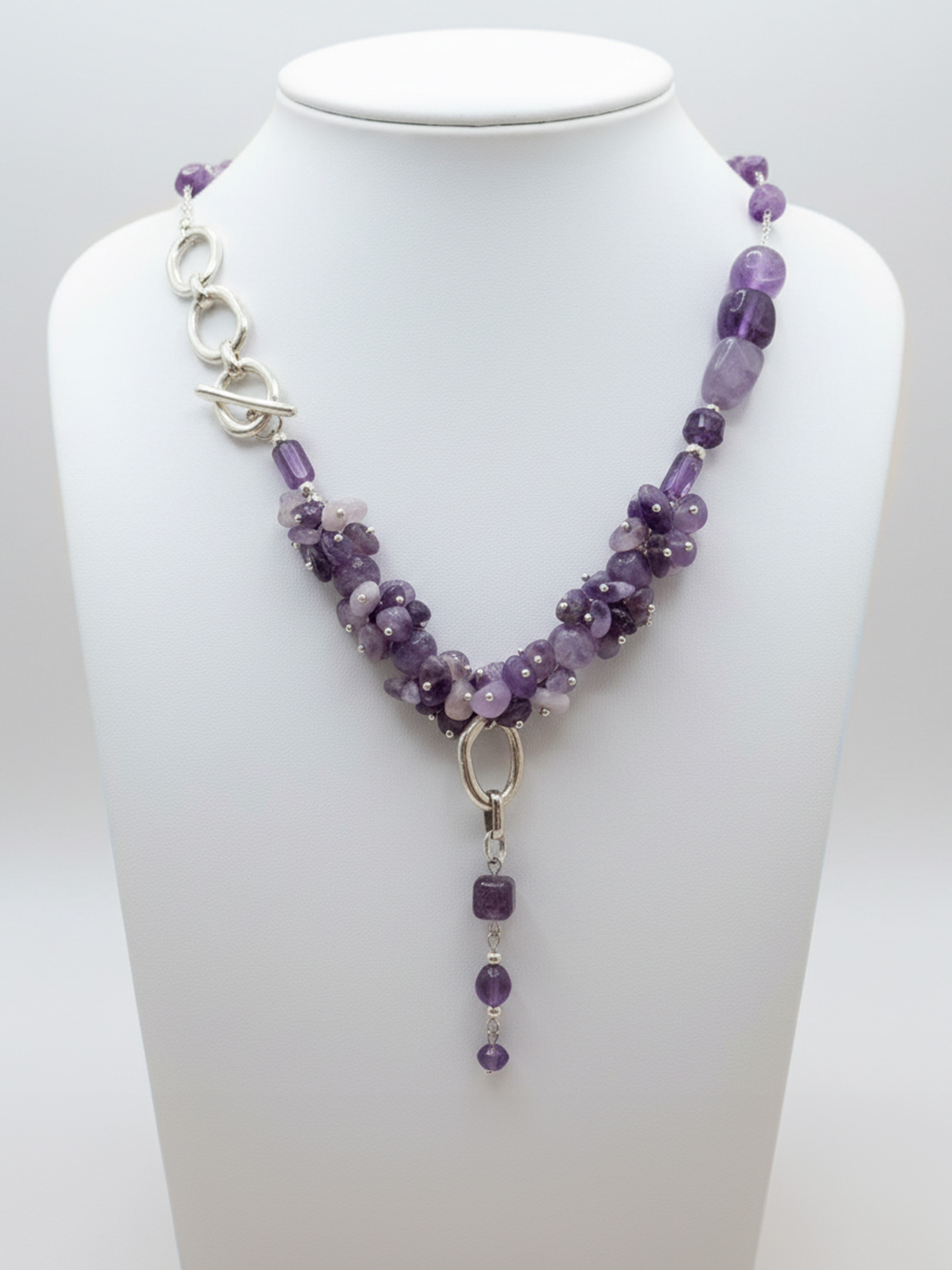 Аметист — символ чистоты, строгости и точности. Избавляет от вспыльчивости и гнева, оберегает от дурных намерений. Раскрывает таланты в человеке, создает позитивную атмосферу. Женщинам продлевает молодость, дарит красоту и очарование.
