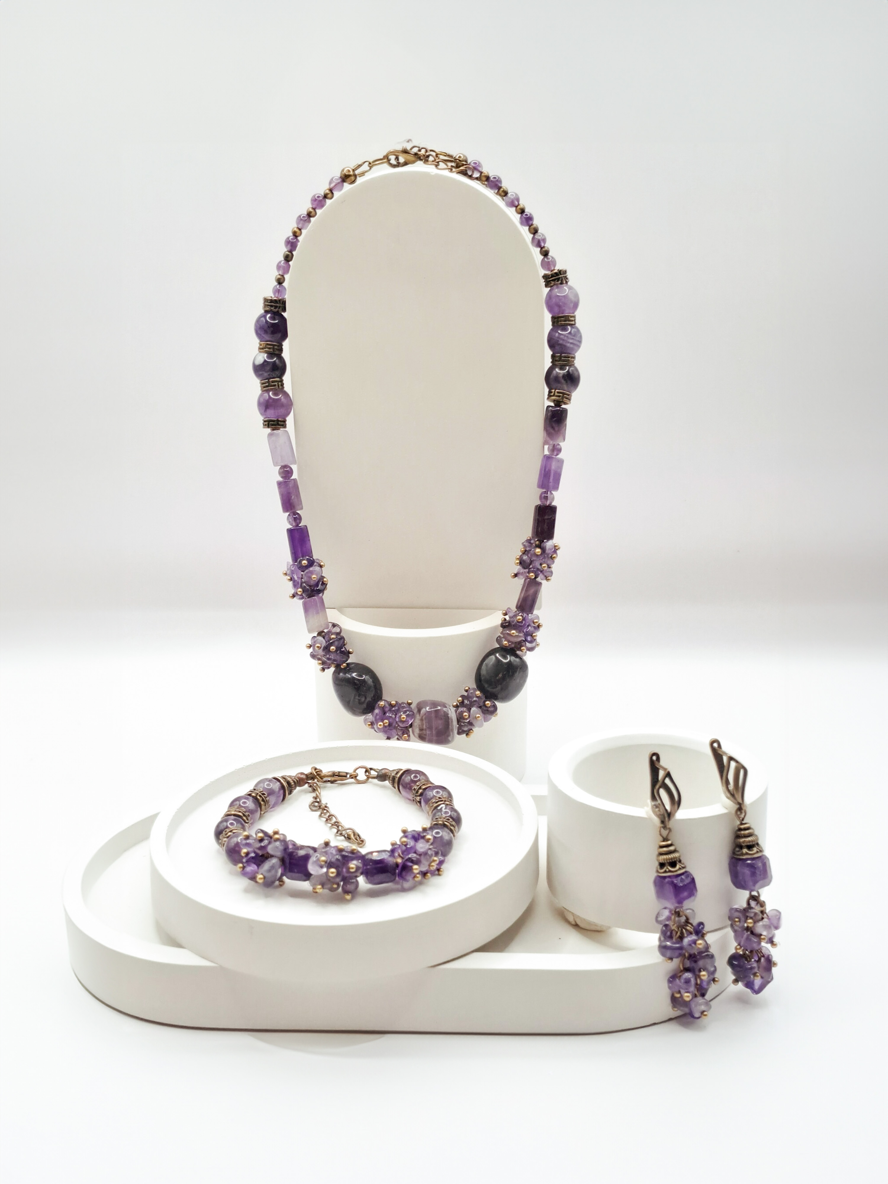 Аметист — символ чистоты, строгости и точности. Избавляет от вспыльчивости и гнева, оберегает от дурных намерений. Раскрывает таланты в человеке, создает позитивную атмосферу. Женщинам продлевает молодость, дарит красоту и очарование.