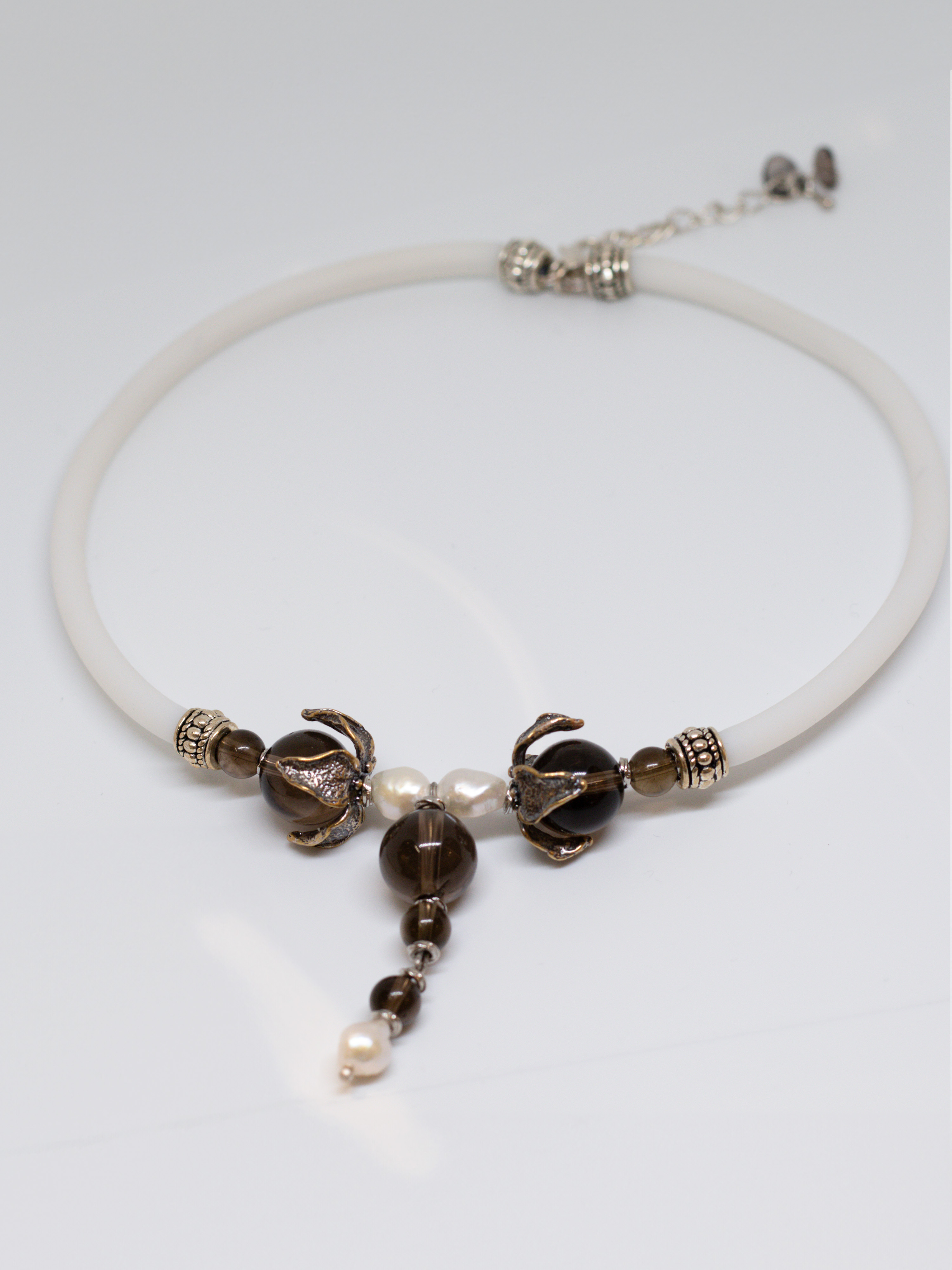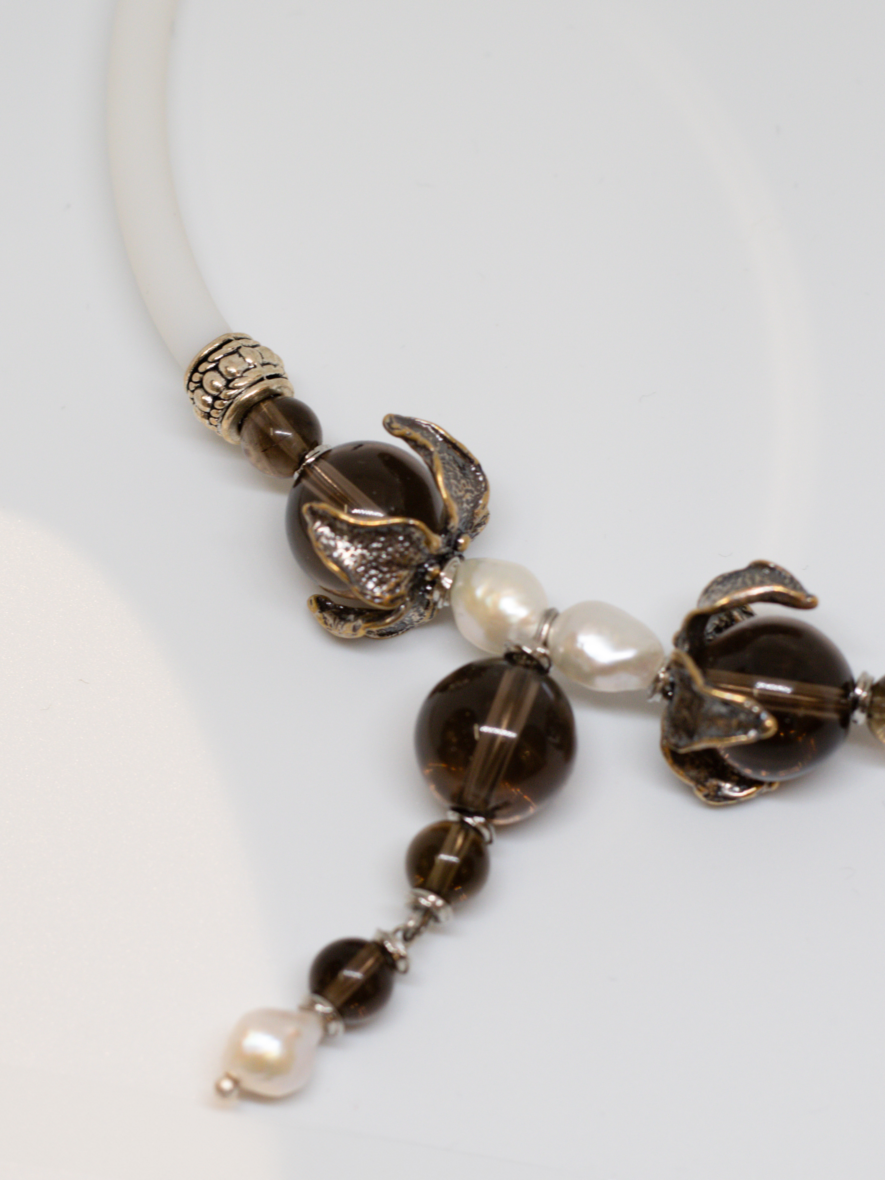 В утренней дымке пробиваются первые солнечные лучи, аромат бодрящего кофе дарит радостное предвкушение нового дня. Дымчато-коричневый раухтопаз, с его глубокими, загадочными оттенками, словно отражает утренний туман, создавая атмосферу спокойствия и уверенности. Жемчуг, добавляет нотку классики и роскоши. Ты чувствуешь себя неотразимой, излучая элегантность и уверенность в каждом шаге.