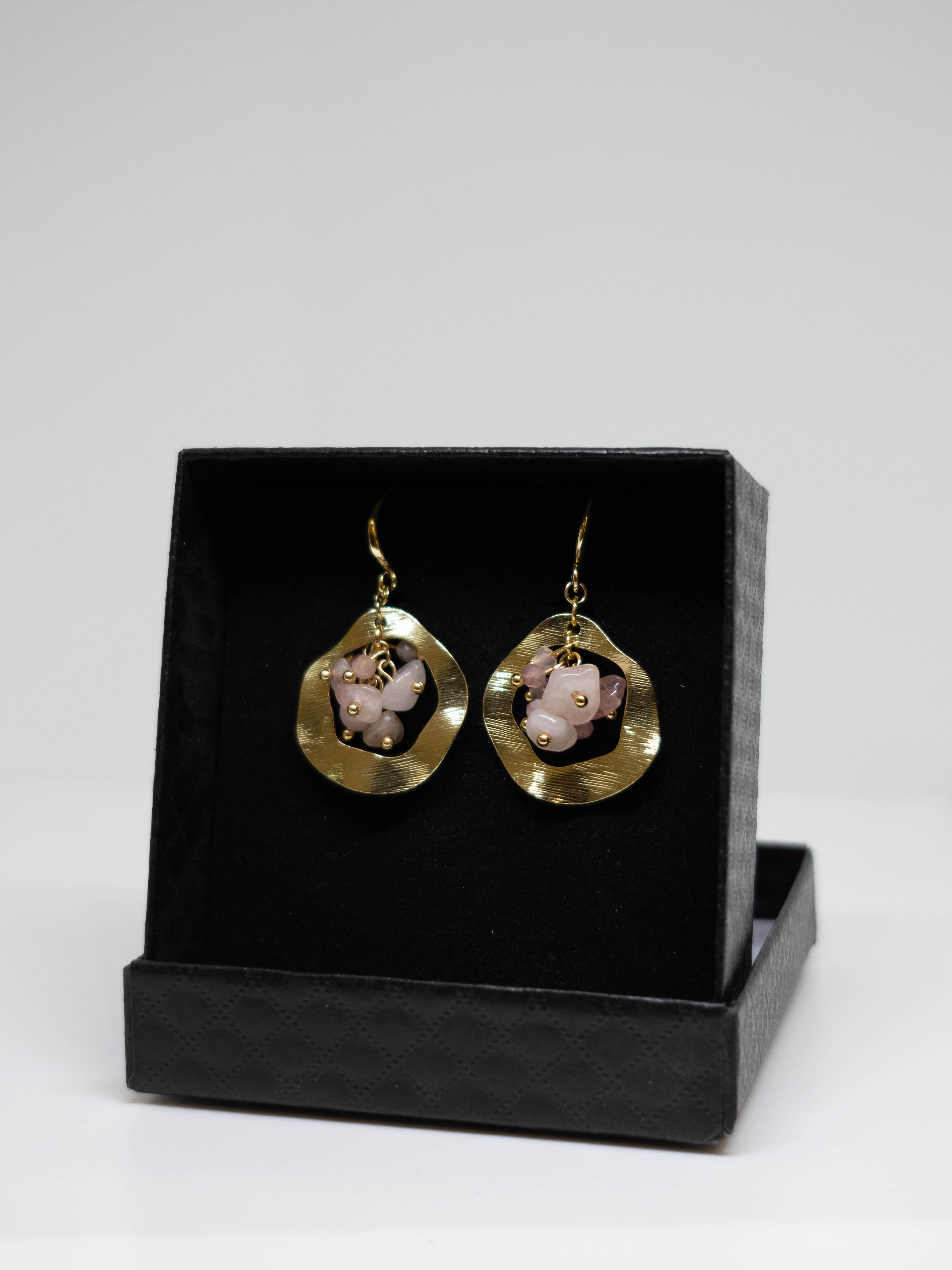 - Фурнитура: бижутерный сплав с напылением золота 18К
